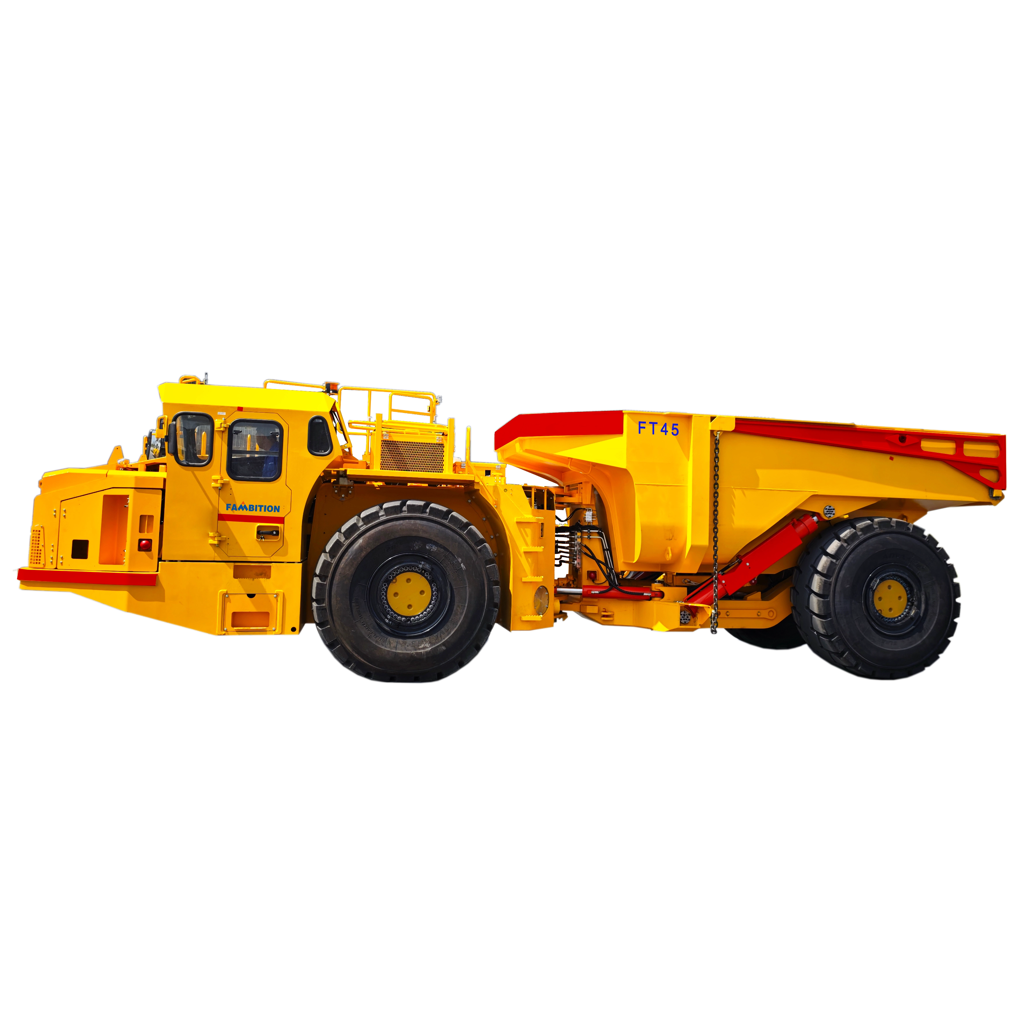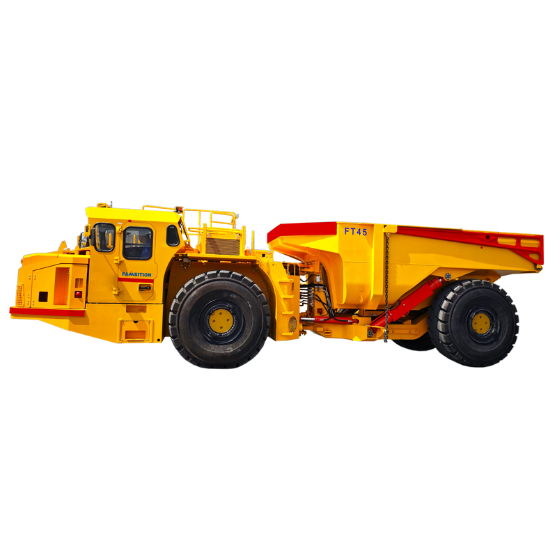 El camión para minería subterránea FT45 es un camión volquete articulado de servicio pesado diseñado específicamente para proyectos de construcción de túneles y minas subterráneas sin carbón a gran escala. Fabricado por FAMBITION, un reconocido fabricante especializado de equipos mineros sin rieles, este camión de acarreo subterráneo de 45 toneladas de capacidad ofrece un rendimiento excepcional en los entornos subterráneos de transporte de roca dura más exigentes.